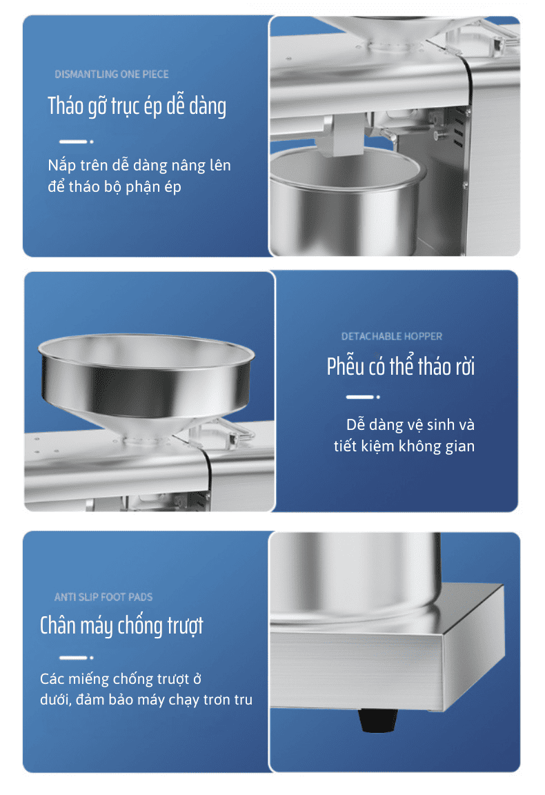 Trong bối cảnh thực phẩm công nghiệp ngày càng khó kiểm soát, nhiều hộ gia đình đã và đang tự trang bị máy ép dầu tại nhà như một cách chủ động bảo vệ sức khỏe và dinh dưỡng. Máy ép dầu TH-X8S chính là một trong những lựa chọn được đánh giá cao nhờ công suất mạnh mẽ, vật liệu cao cấp, vận hành ổn định và khả năng ép kiệt tối đa.