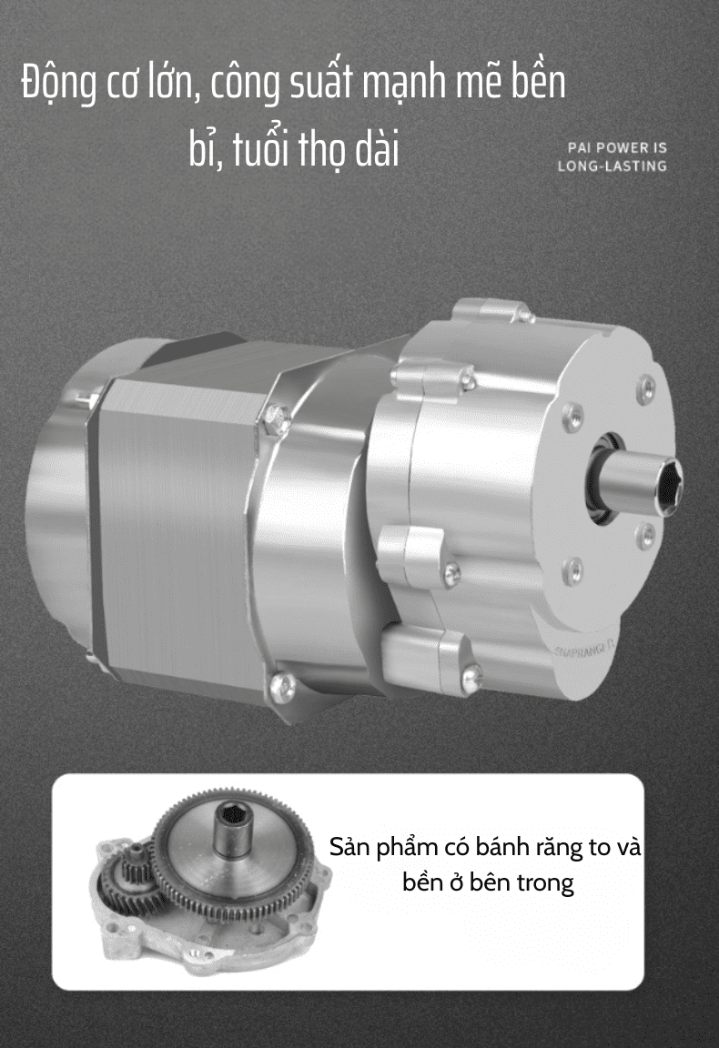 Bánh răng truyền lực thép cao cấp, bền và vận hành êm ái suốt nhiều năm.