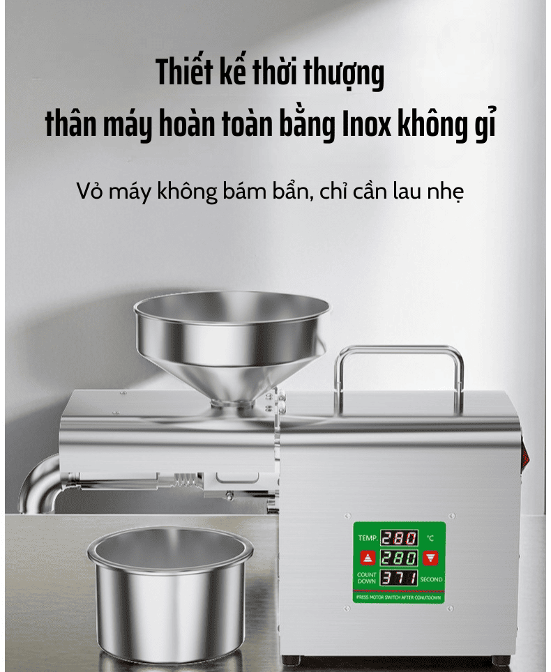 Trong bối cảnh ngày càng nhiều loại dầu ăn trên thị trường tiềm ẩn nguy cơ hóa chất, dầu tái chế hoặc chiết xuất bằng phương pháp công nghiệp làm mất đi dưỡng chất tự nhiên, xu hướng tự ép dầu tại nhà trở thành lựa chọn thông minh và an toàn được nhiều gia đình ưu tiên. Và nếu bạn đang tìm kiếm một dòng máy ép dầu vừa hiệu quả, vừa bền bỉ, thiết kế gọn đẹp lại dễ sử dụng thì máy ép dầu thực vật X3S chính là lựa chọn hoàn hảo đáng để đầu tư.