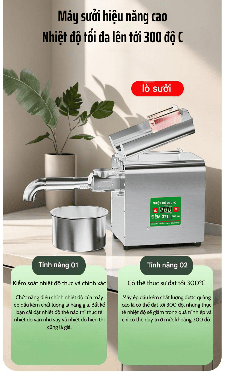Với những tính năng vượt trội, động cơ không chổi than, màn hình kỹ thuật số hiện đại, điều chỉnh nhiệt linh hoạt và khả năng ép kiệt đến 99%, X3S không chỉ giúp bạn ép ra những giọt dầu vàng óng, nguyên chất 100%, mà còn mang lại sự an tâm tuyệt đối khi dùng cho cả gia đình – từ người lớn đến trẻ nhỏ.