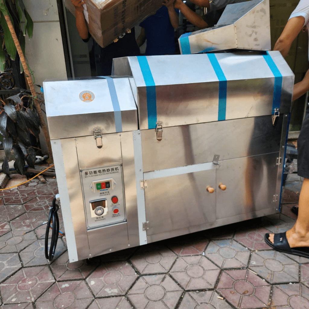 Máy được thiết kế tối ưu cho khả năng làm việc liên tục, giữ nhiệt ổn định và đảo mạnh để tạo ra mẻ hạt đạt chuẩn cả về màu – độ giòn – hương vị.