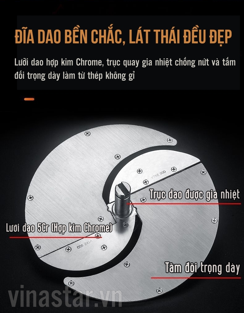 - Đa Dạng Cắt Cả Lát Và Sợi: Máy có thể thái lát với độ dày tùy chỉnh từ 0.1 đến 10mm chỉ bằng 1 thao tác dễ dàng. Ngoài ra, máy có thể thái sợi bằng cách thay dao thái sợi vào với các kích thước sợi 2mm-3mm-3.5mm để phù hợp với các món ăn đa dạng khác nhau.