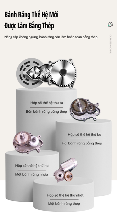 ✅ Hộp số và bánh răng nâng cấp thế hệ 4 giúp máy hoạt động liên tục 24 giờ/ngày mà không bị quá tải hay nóng máy.