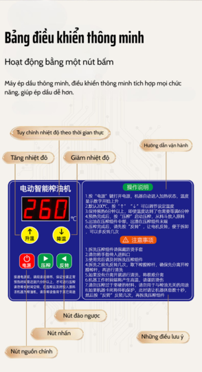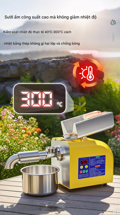 ✅ Tích hợp tính năng điều chỉnh nhiệt độ linh hoạt từ 40–300°C, phù hợp với từng loại nguyên liệu như: lạc, vừng, đậu nành, óc chó, mắc ca, hướng dương...