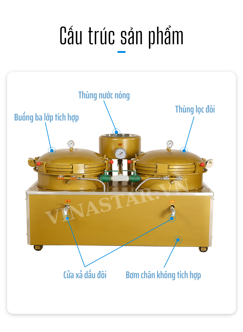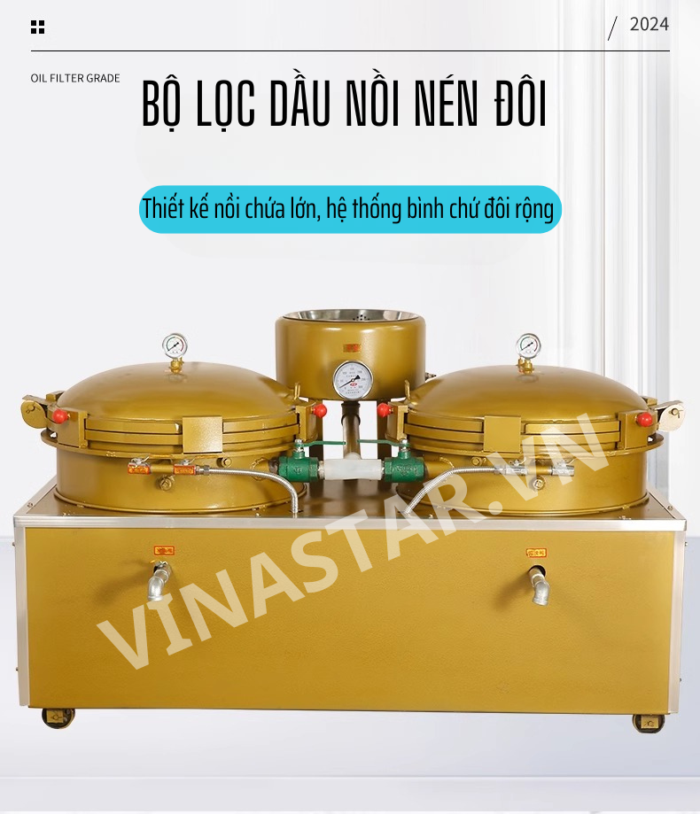 Nồi lọc dầu nén đôi là thiết bị hiện đại, được ứng dụng rộng rãi trong ngành sản xuất dầu ăn. Với cấu tạo đặc biệt và nguyên lý hoạt động hiệu quả, sản phẩm này giúp loại bỏ hoàn toàn các tạp chất, đảm bảo dầu ăn luôn sạch sẽ, tinh khiết và an toàn cho sức khỏe người tiêu dùng.